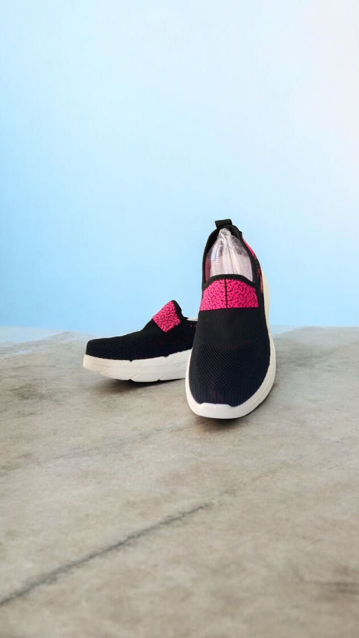 Grâce à leur design sans lacets, elles se portent facilement et conviennent aussi bien pour la marche, les activités légères ou une tenue décontractée. La combinaison du noir avec des touches de rose vif donne un look moderne et dynamique qui saura s’adapter à différents styles vestimentaires.